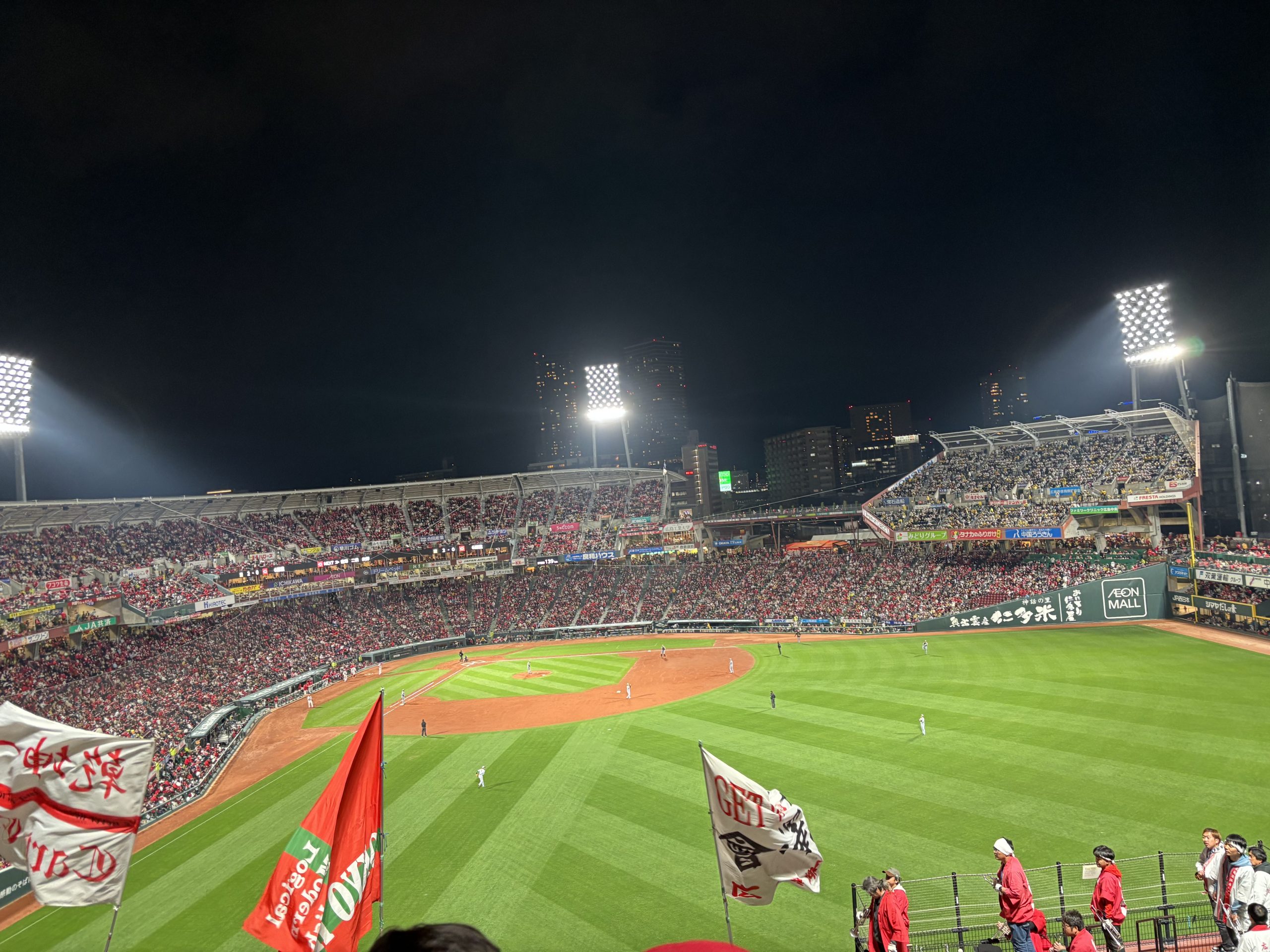 カープファンの熱気がすごく、内野から外野まで真っ赤に染まるスタンドは圧巻です!