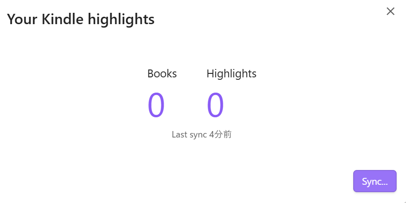ここの左の四角いボタンを押したらKindle Highlightsのプラグインが起動できて