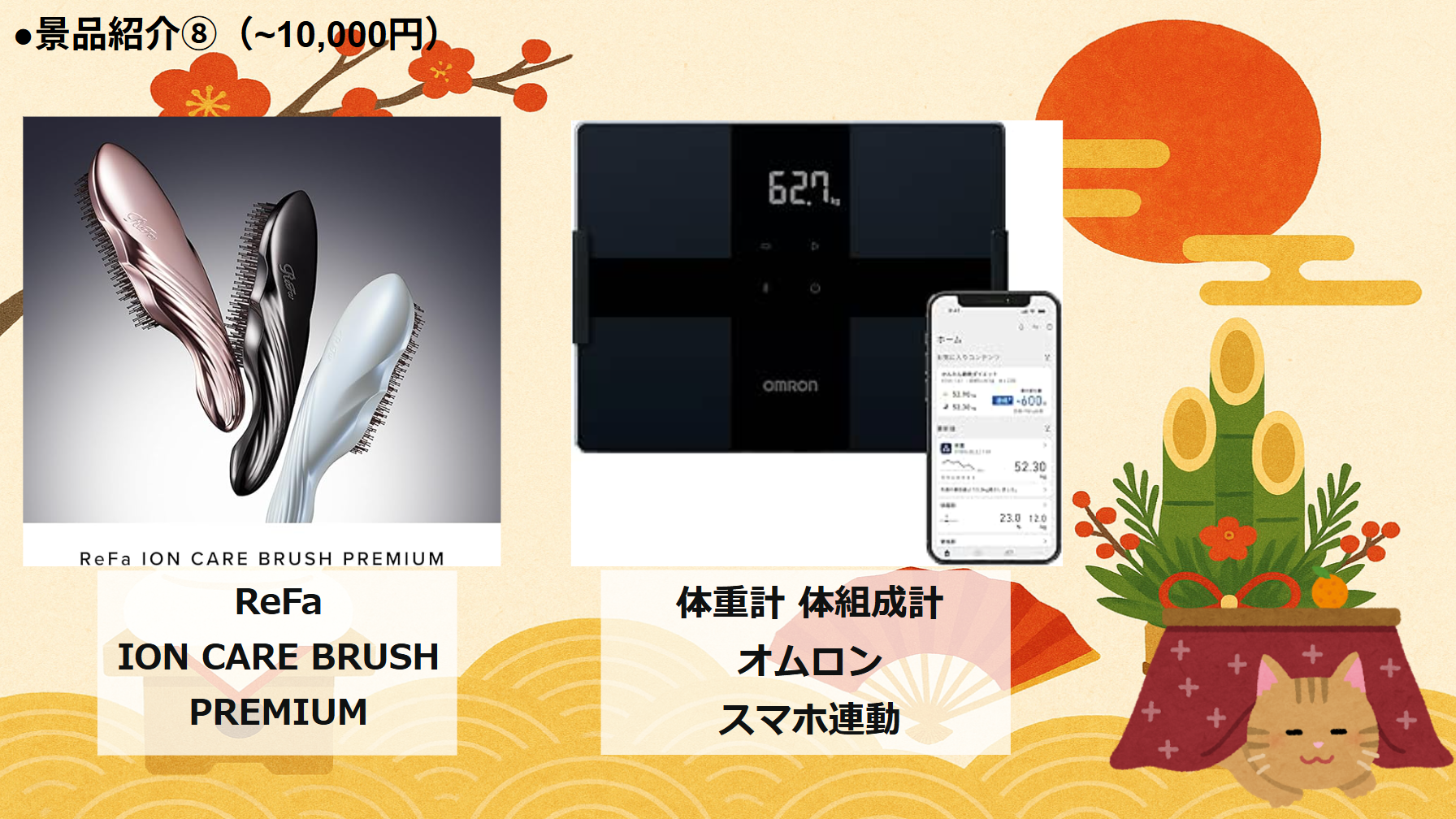 景品は「年末年始に使えるもの」や「もらったら嬉しいもの」をテーマに選びました!
