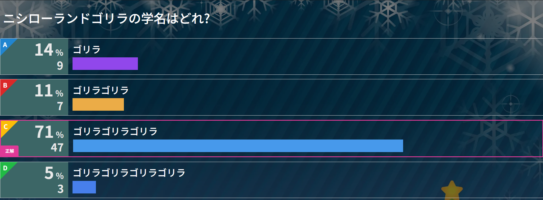 正答率が55%で、代表の中村さんが悲しんでいました・・・