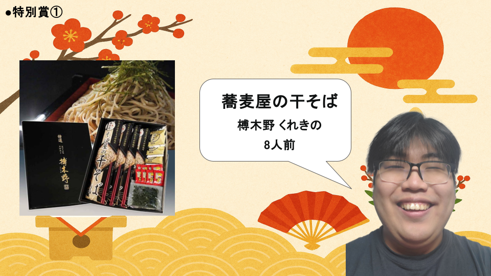 一番最初に正解した人には、年越しにぴったりな「おそば」をプレゼント!