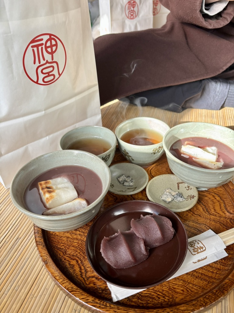 最後に体を温めるべく赤福へ。おかげ横丁に何店舗かありますが、五十鈴川店は割と待ち時間少なく入れました。