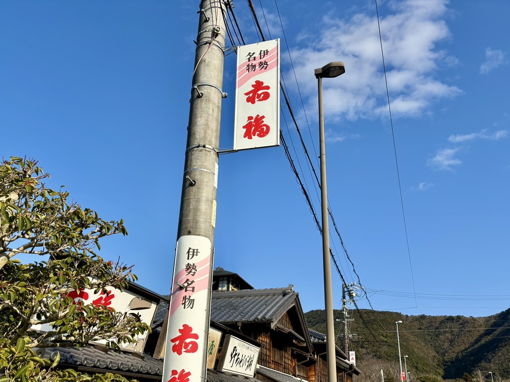 伊勢神宮に近づくと、電柱に赤福の広告が目に入ります。