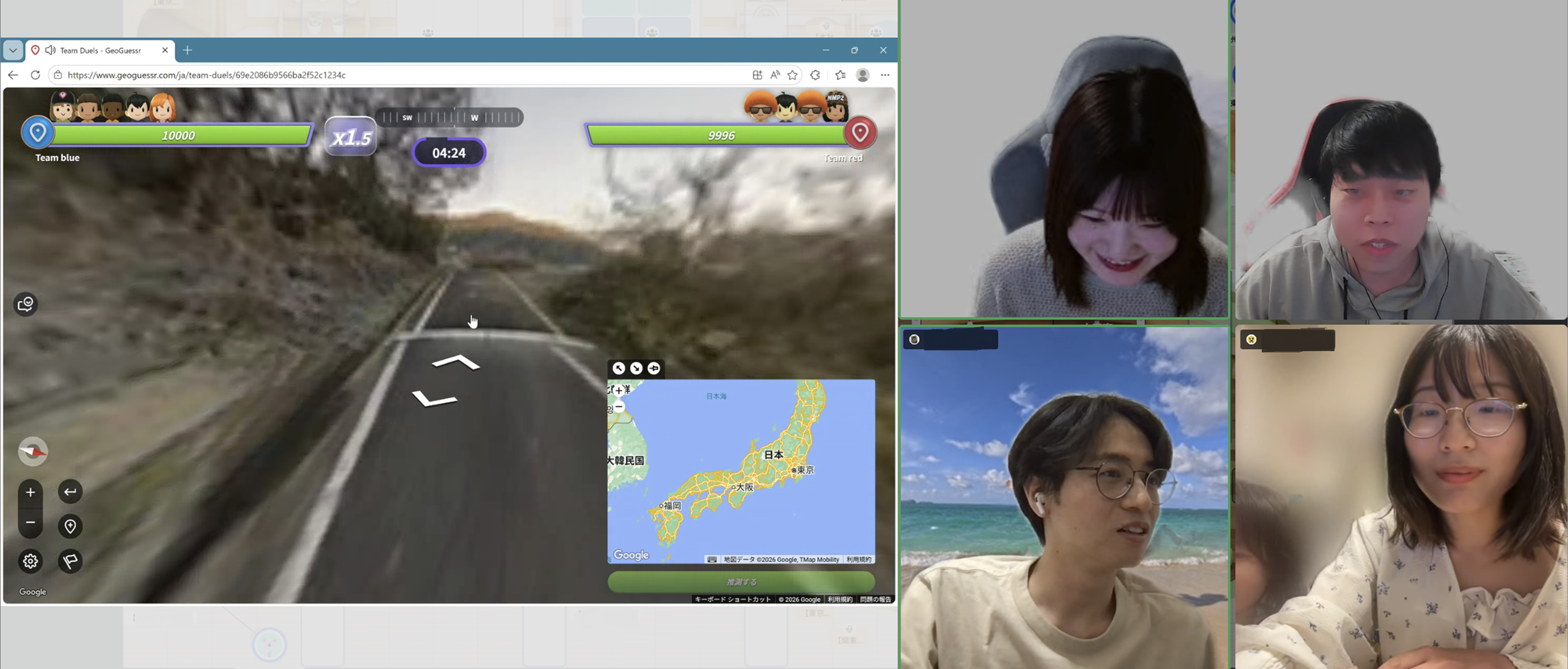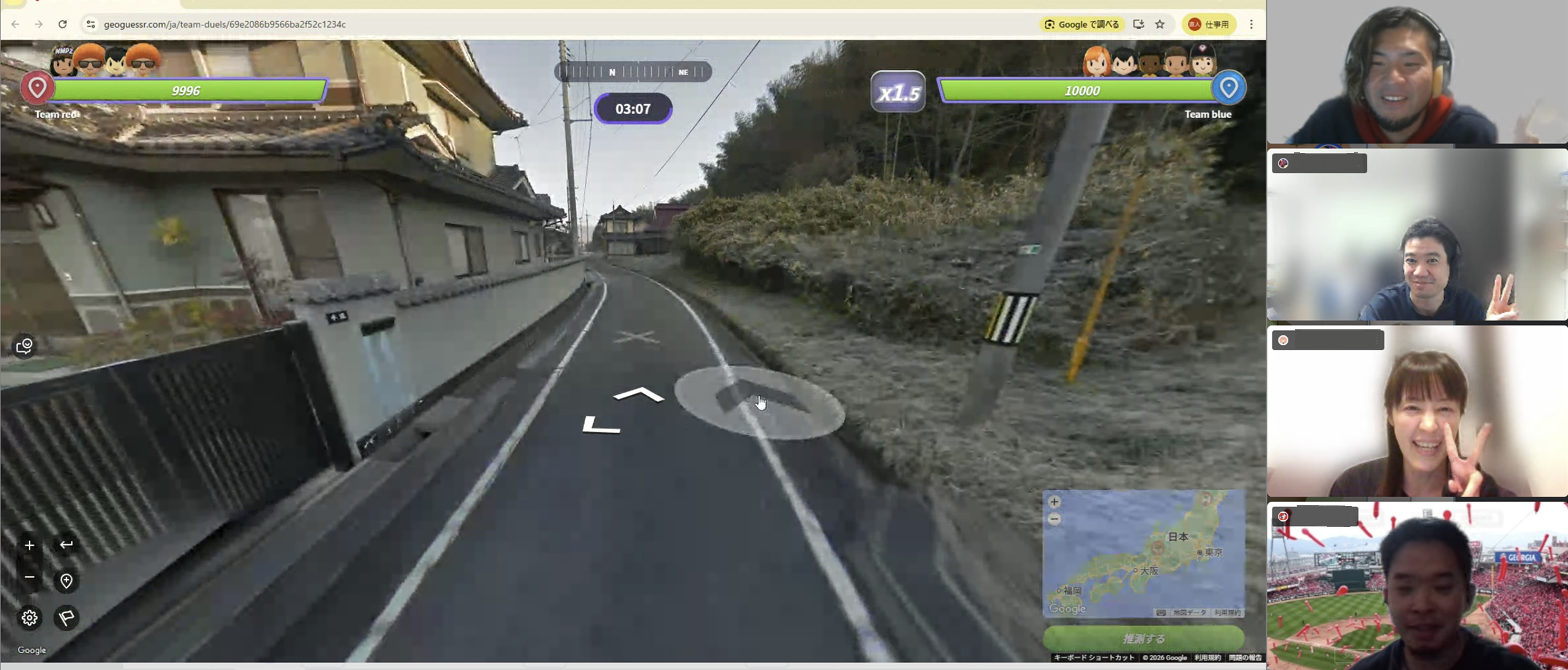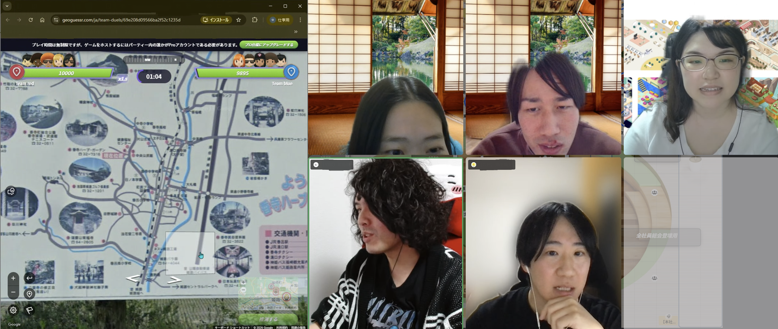 定期的に行われている人気のGeoGuessr、参加者がとても多くテーブル散り散りになりながらも